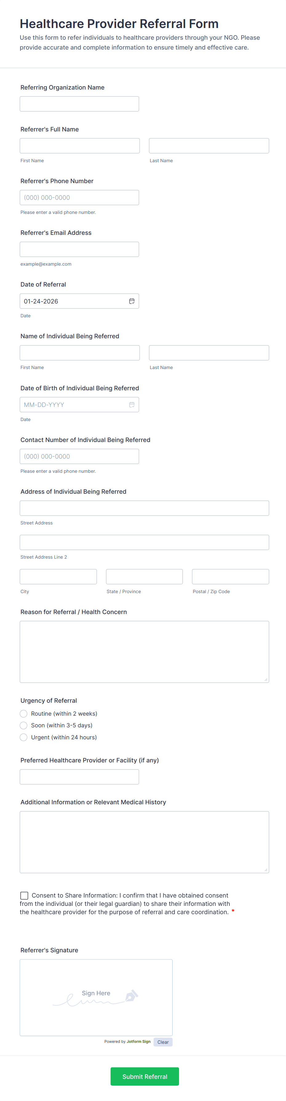 • For healthcare or sensitive referrals, include fields for privacy agreements or HIPAA compliance.