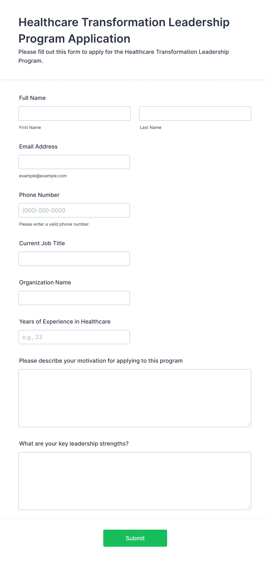 • Identify the purpose of your form (e.g., patient registration, staff application, volunteer sign-up).