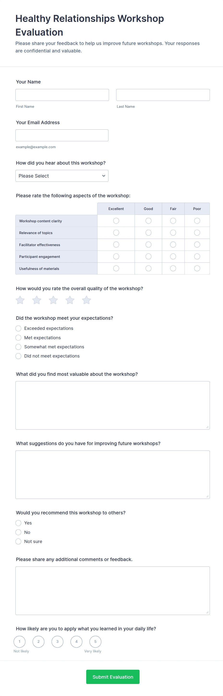 • Workshop or training session assessments to gauge learning outcomes and instructor effectiveness.