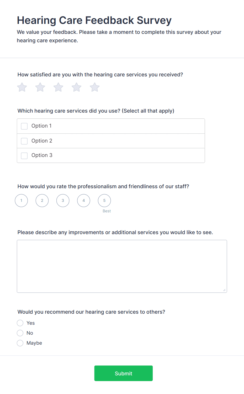 A patient feedback form is a survey with questions that allows medical doctors to gather feedback from patients regarding their overall experience with the clinic.