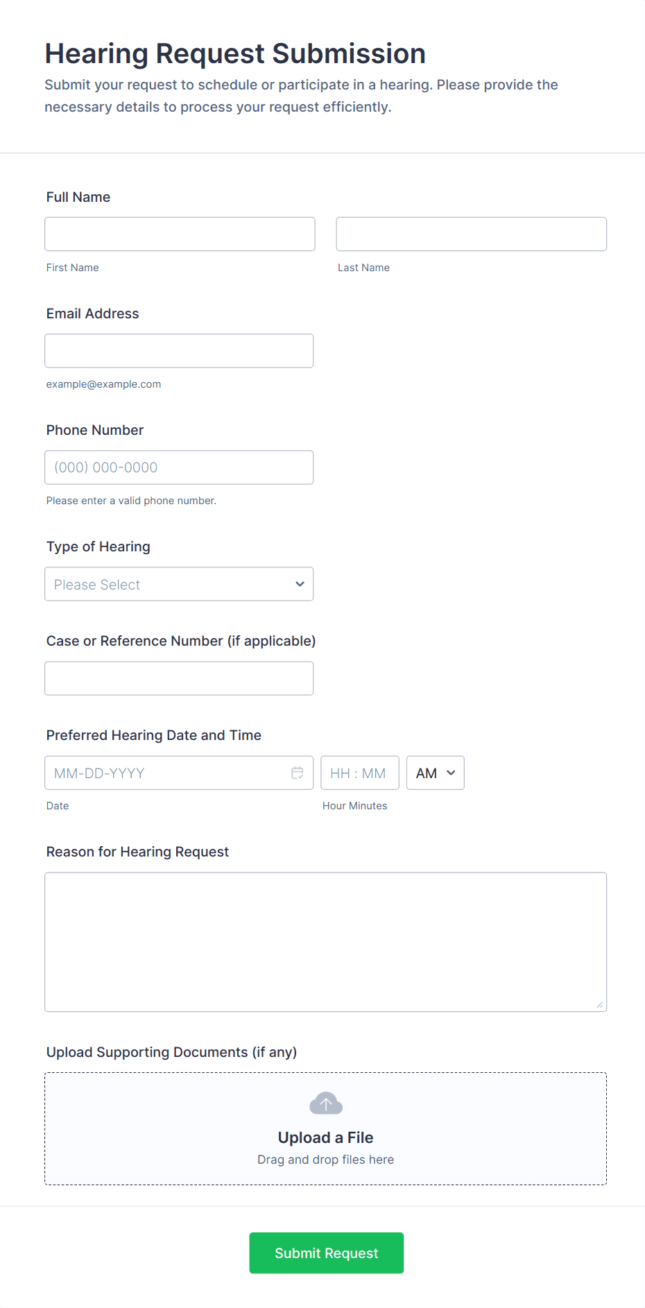 Legal Form Templates are pre-designed documents used to facilitate a wide range of legal processes, such as drafting contracts, collecting e-signatures, managing client intake, and ensuring compliance with regulations. These templates are essential for law firms, legal departments, HR professionals, and individuals who need to create legally binding agreements, waivers, consent forms, NDAs, and more. By providing a structured format, legal form templates help users capture all necessary information, reduce errors, and streamline the documentation process for various legal transactions and procedures.