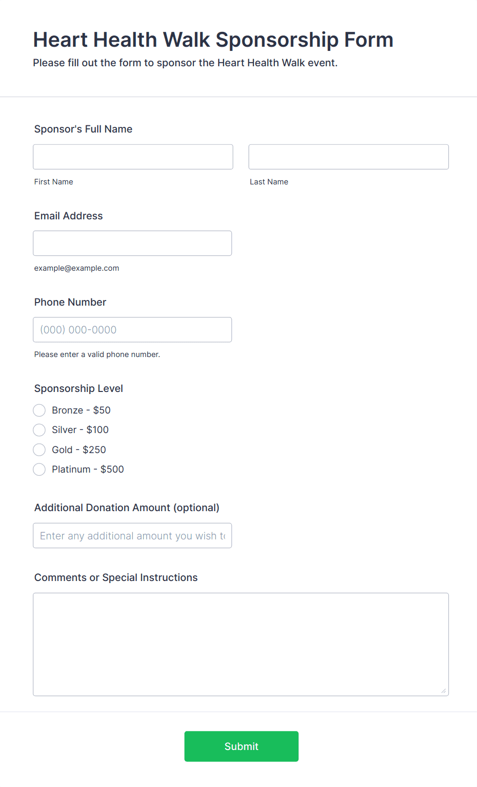 By following these steps, you can create a tailored sponsorship form that simplifies sponsor management, enhances donor experience, and supports your fundraising or partnership goals.