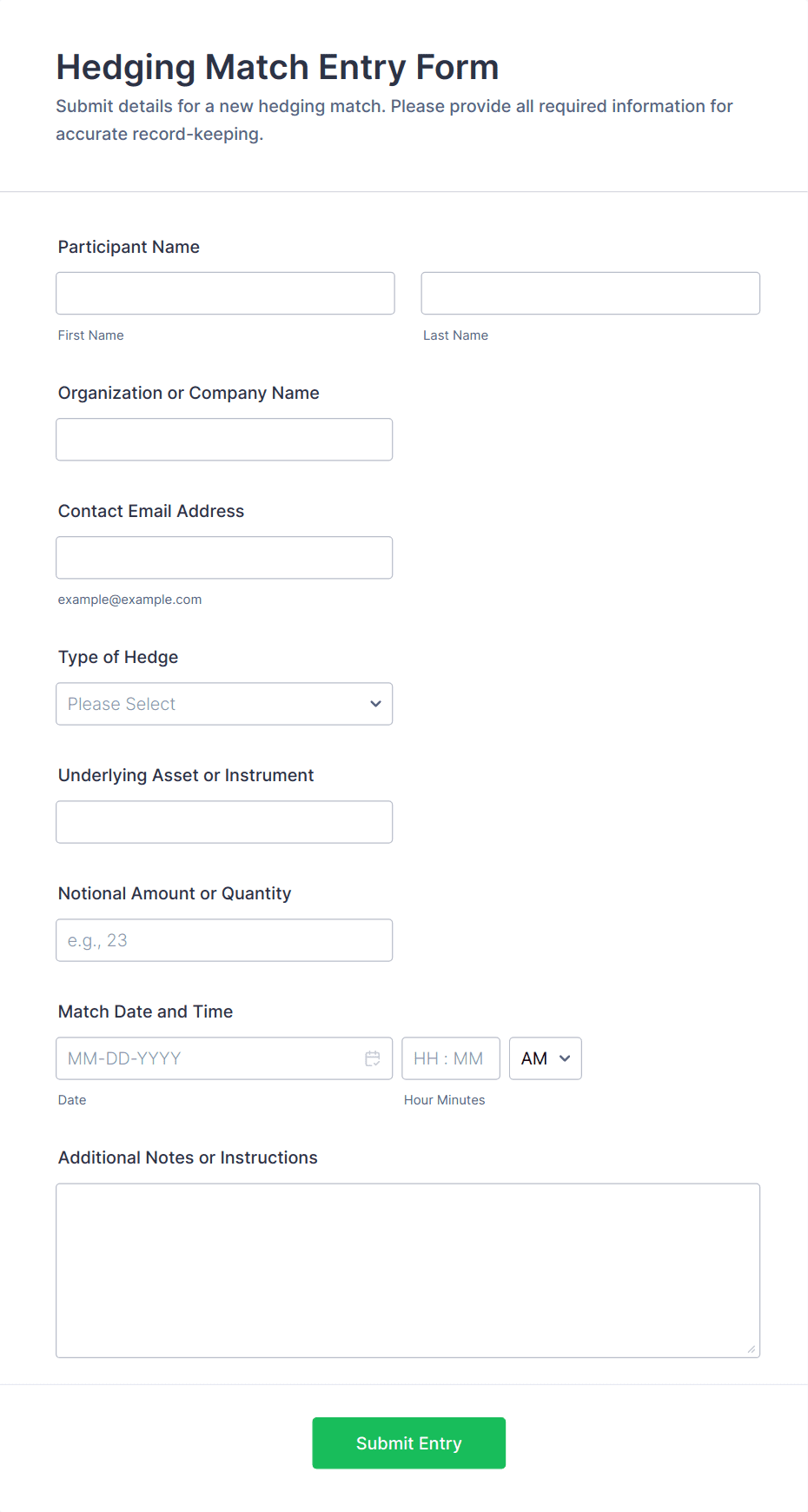 Contest entry forms are specialized online forms designed to collect participant information for a wide range of competitions, giveaways, and sweepstakes. These forms streamline the process of gathering essential details such as names, contact information, eligibility confirmations, and contest-specific responses like creative submissions or answers to quiz questions. Whether you’re running a photo contest, a writing competition, a social media giveaway, or a corporate challenge, contest entry forms help organizers efficiently manage entries, ensure compliance with rules, and maintain a fair and organized selection process.