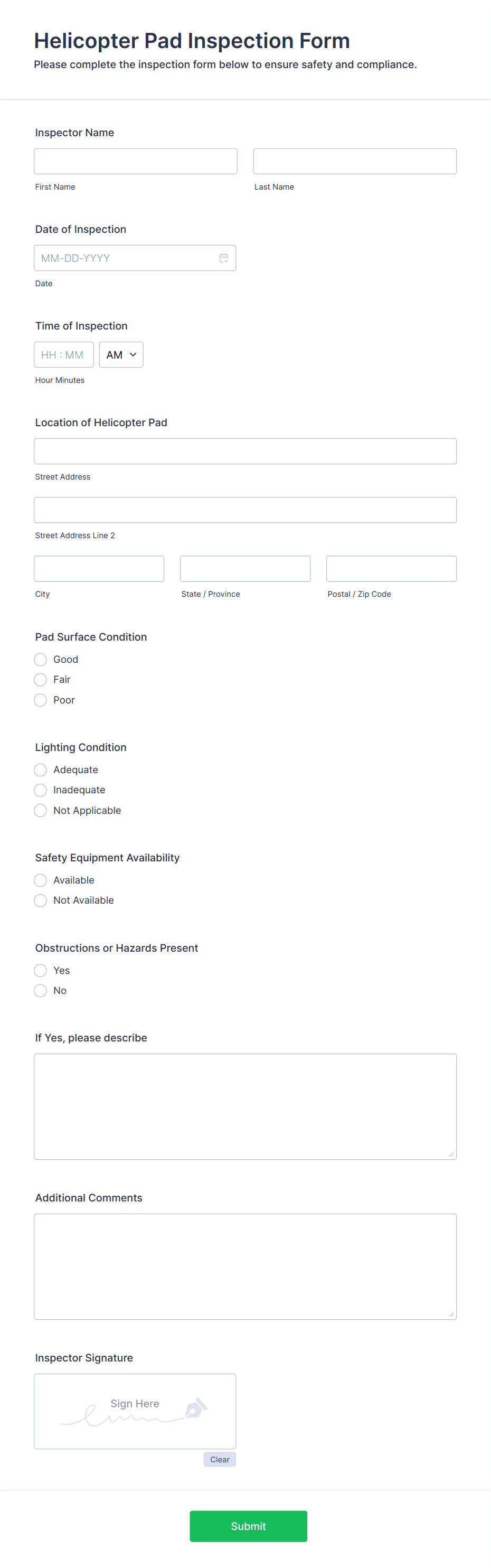 Inspection forms are specialized documents used to systematically evaluate, record, and report the condition, compliance, or quality of assets, environments, or processes. These forms are essential across a wide range of industries, including construction, manufacturing, real estate, hospitality, healthcare, and transportation. Common use cases include safety inspections, equipment checks, property walkthroughs, vehicle inspections, food safety audits, and facility maintenance reviews. By standardizing the inspection process, these forms help ensure that all necessary criteria are assessed, issues are documented, and corrective actions are tracked efficiently.
