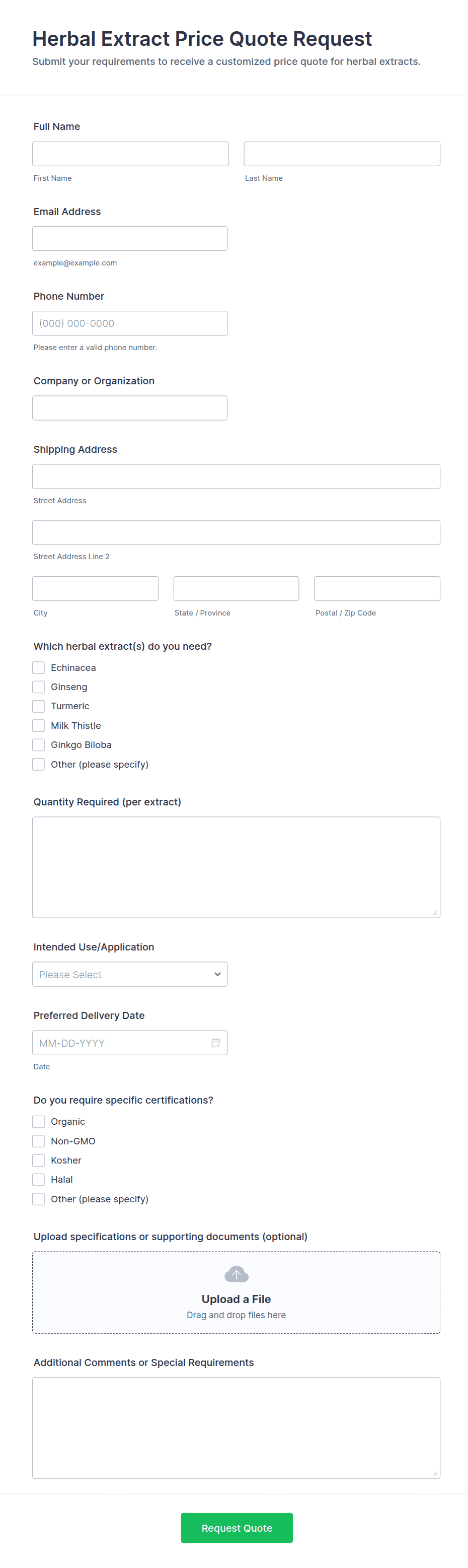 • For service-based quotes, include fields for location, preferred dates, and specific requirements.