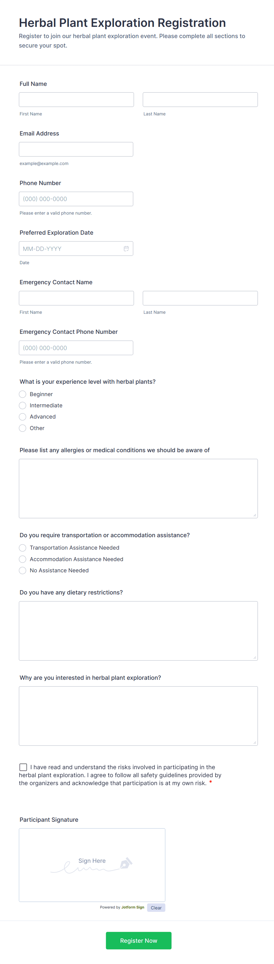 Event Registration Forms are digital tools designed to streamline the process of collecting attendee information for a wide variety of events, such as conferences, workshops, webinars, fundraisers, classes, and social gatherings. These forms allow organizers to gather essential details like participant names, contact information, payment preferences, dietary restrictions, and session selections. By using event registration forms, event planners can efficiently manage RSVPs, track attendance, and ensure a smooth check-in process on the day of the event. The flexibility of these forms makes them suitable for both small private gatherings and large-scale public events, adapting to the unique requirements of each occasion.