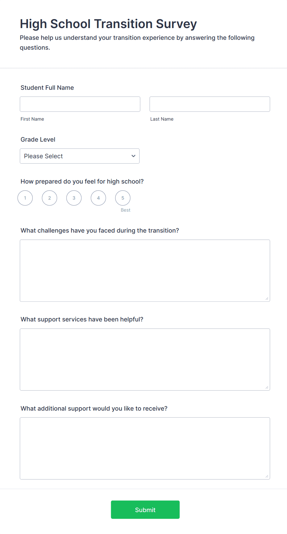 • For student or parent surveys, add questions about satisfaction, communication, and support services.