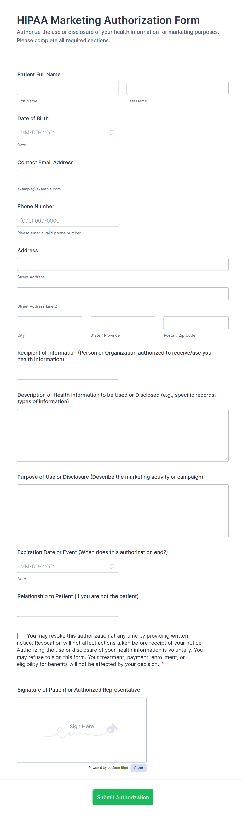 By following these steps, you can create a secure, compliant, and user-friendly Authorization Form that streamlines the consent process for any scenario. Jotform’s flexible tools ensure your forms are both effective and easy to manage, regardless of your organization’s needs.