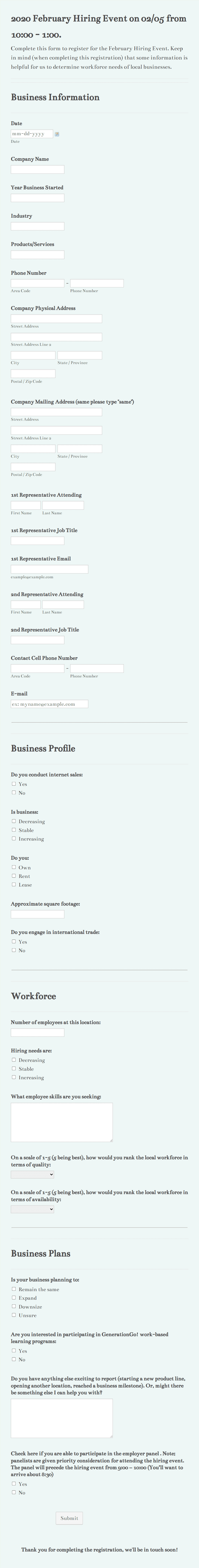 3. What information should be included in an event registration form?