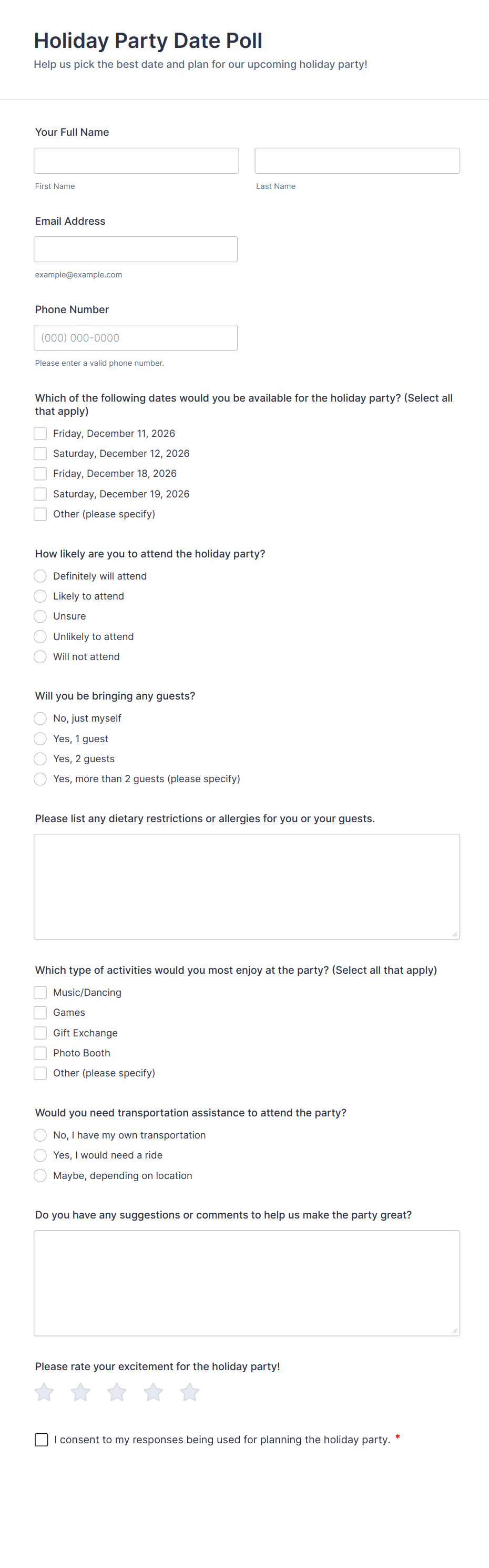 • For event or scheduling polls, include date pickers or time selection fields.