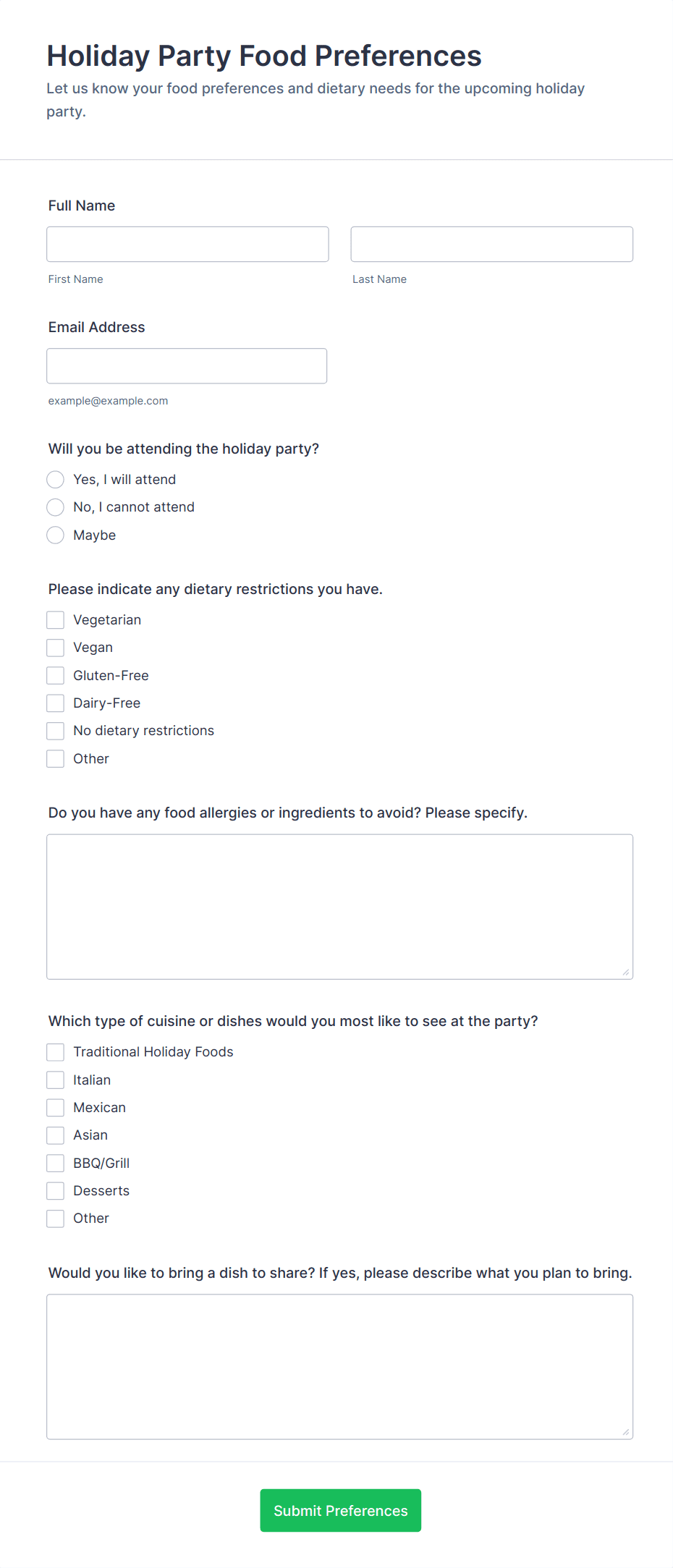 - Holiday party and event RSVP forms
