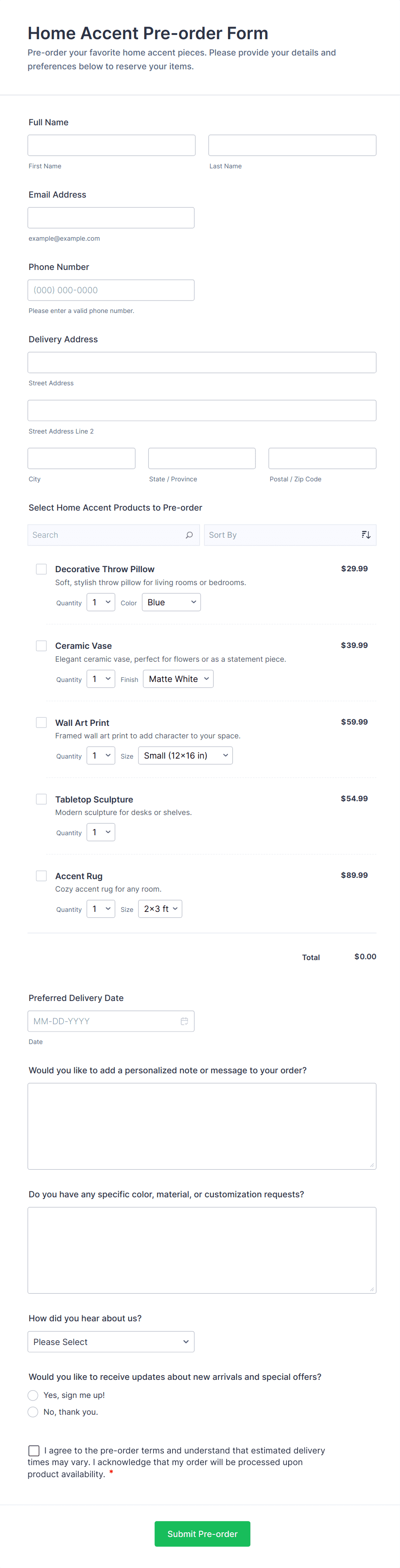 Product Pre Order Form