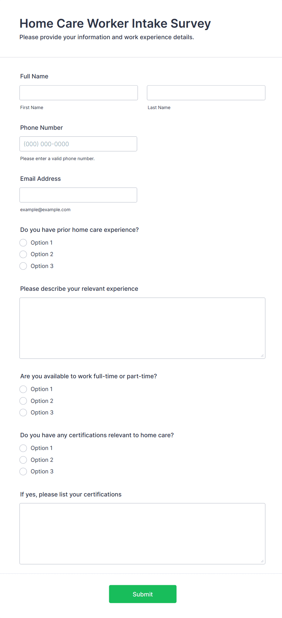 Intake forms are used by healthcare providers, legal professionals, educators, HR departments, consultants, and service-based businesses.