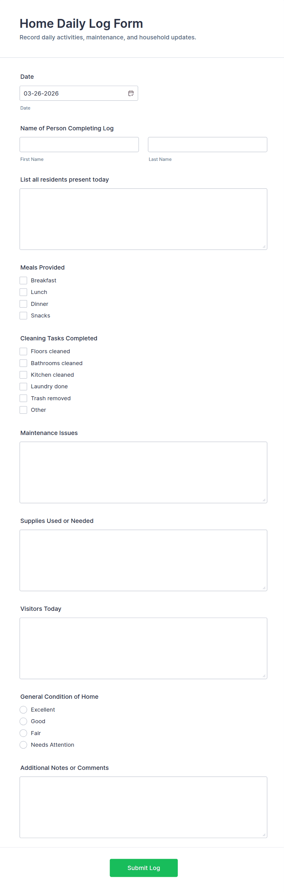 • Manufacturing: Shift date/time, supervisor name, equipment status, production output, safety checks, issues encountered.