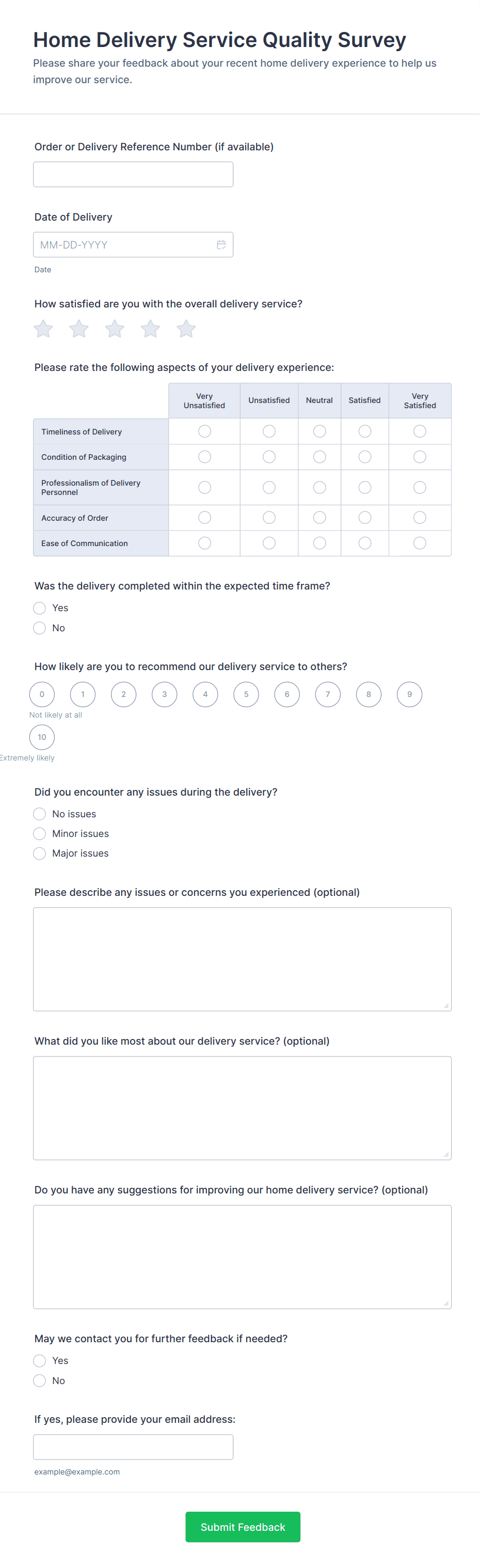 - Short and long text fields for open-ended feedback.
