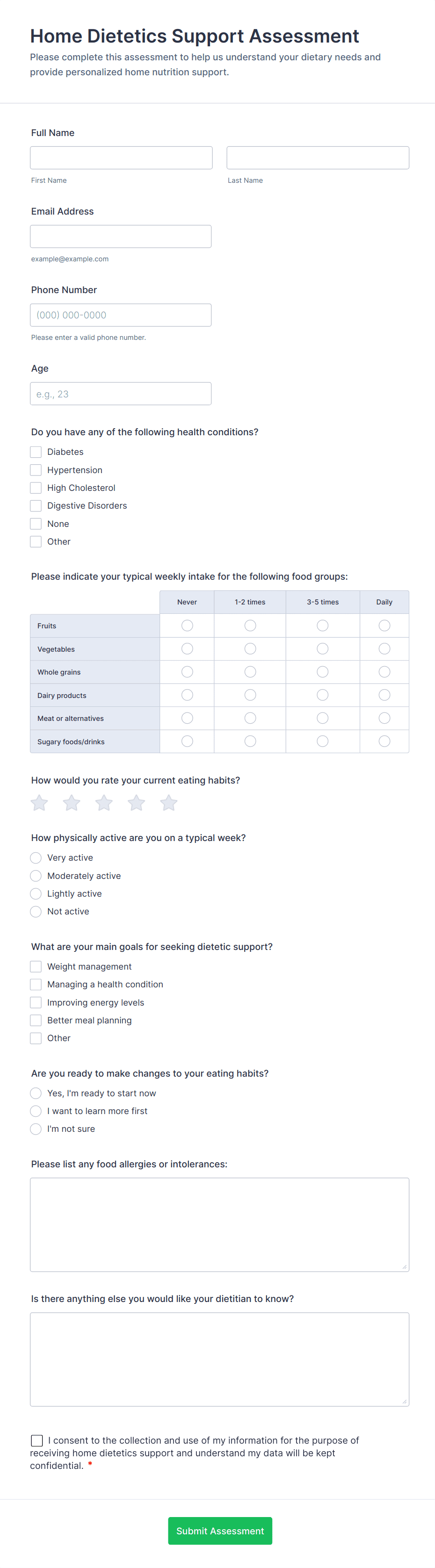 3. What information is typically collected in a dietitian form?