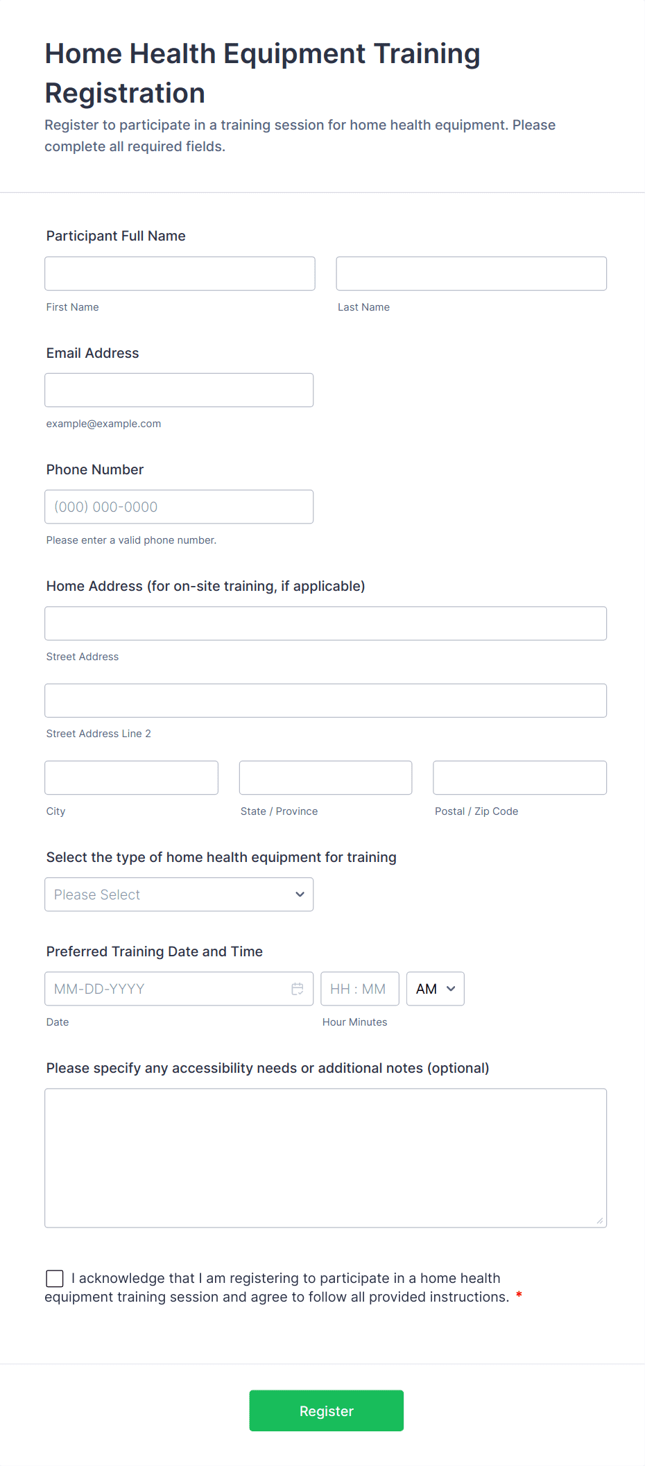 A Training Registration Form is a user-friendly form template designed to streamline the registration process for training providers, corporate HR teams, nonprofits, and event management teams.