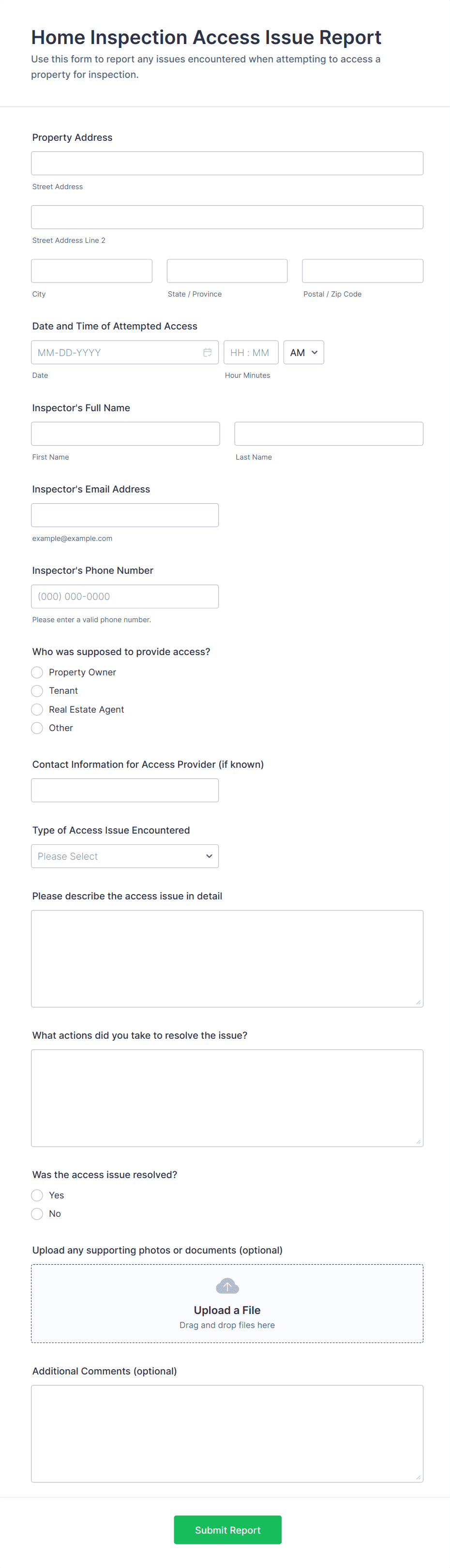 By following these steps, you can create a Home Inspection Form that is tailored to your specific needs, ensures thorough documentation, and simplifies the inspection process for all parties involved.