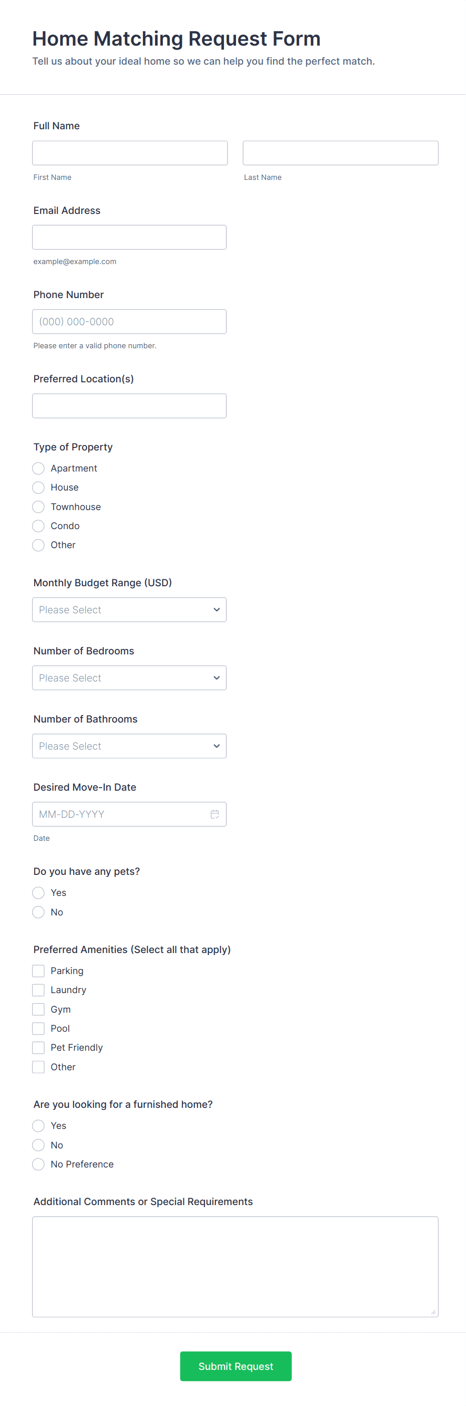 A property inquiry form is used by real estate businesses to request more details regarding a potential property inquiry.