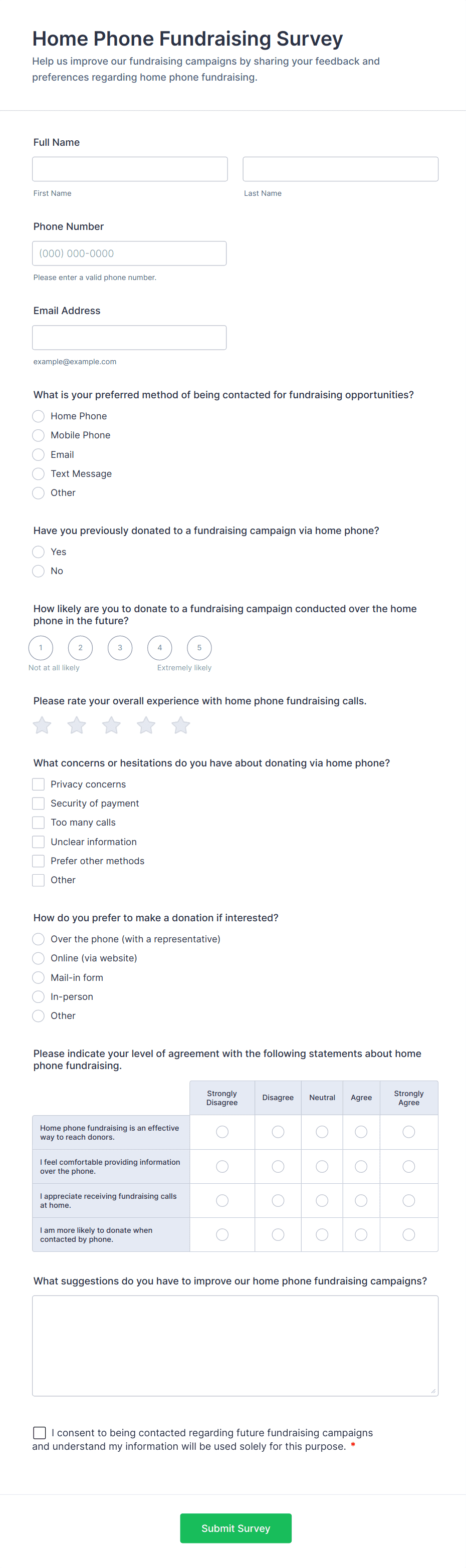 Nonprofits, schools, faith-based organizations, political and community groups, and any team running phone-based fundraising can use this form template to gather feedback and guide outreach decisions.