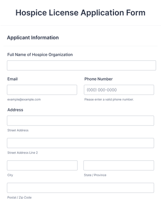 Enroll patients for palliative and hospice care with our free Hospice Forms. Whether you’re an individual or a healthcare provider, our secure online forms allow you to quickly gather important patient information such as contact details, e-signatures, file uploads, health data, and COVID-19 screening notices. All responses are stored in your Jotform account and protected with a 256-bit SSL connection, PCI compliance, and optional HIPAA friendly features.