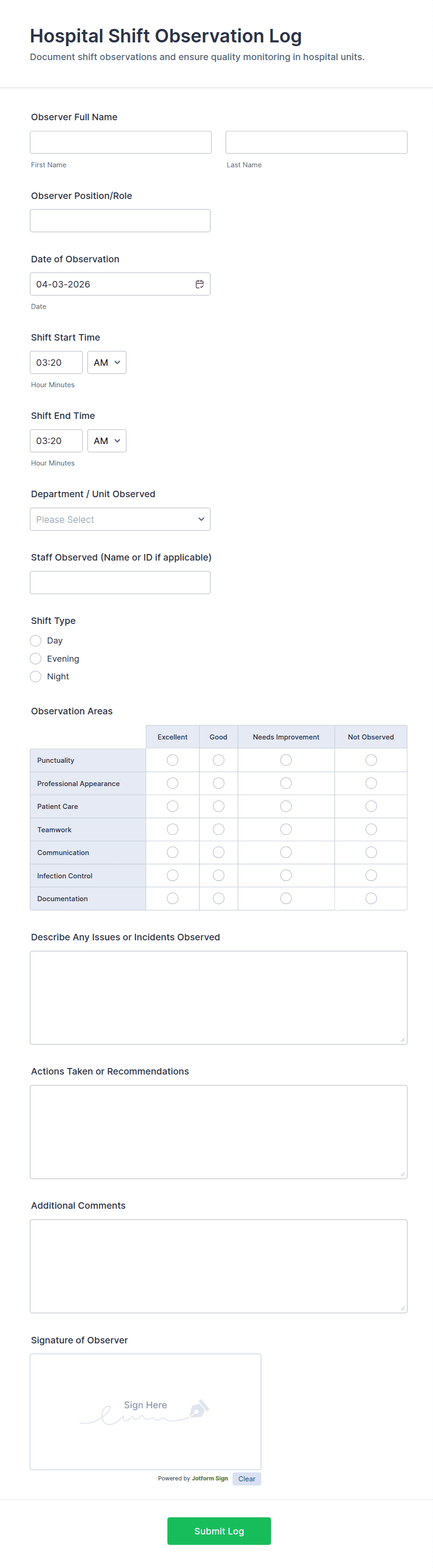 • Healthcare: Nurses and medical staff use shift report forms to document patient status, medication schedules, and critical incidents.