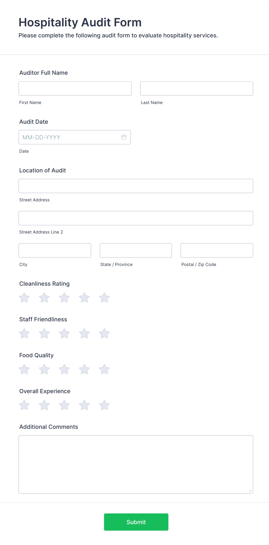 Audit forms are used by safety officers, quality managers, compliance teams, auditors, facility managers, HR professionals, and other stakeholders responsible for oversight and evaluation.