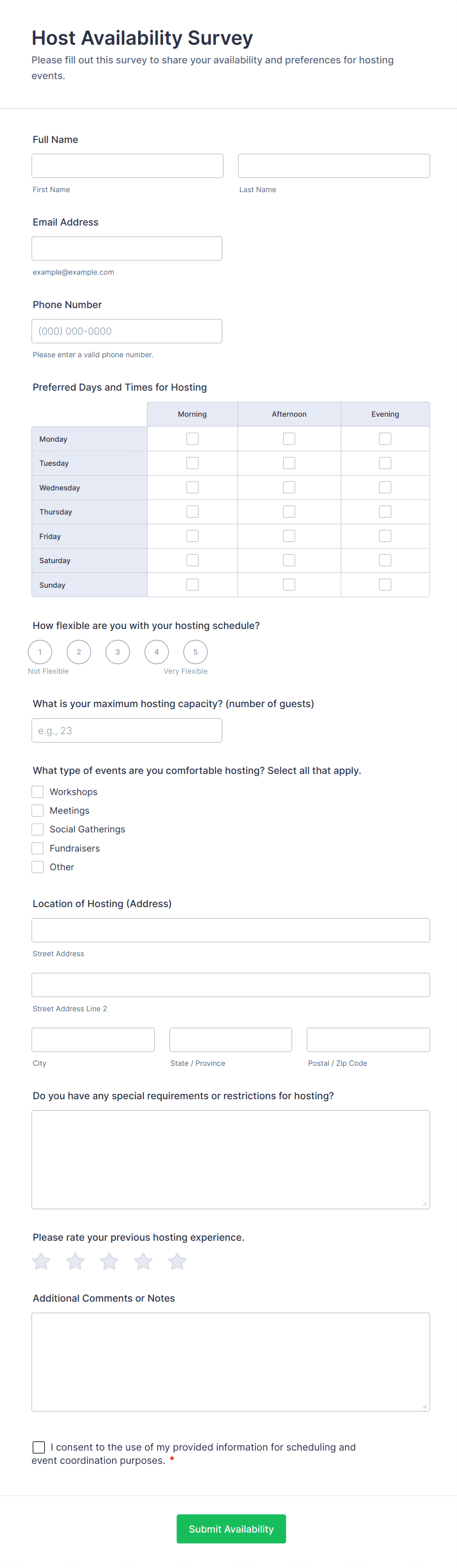 - Content and Fields: A customer satisfaction survey may focus on rating scales and open-ended feedback, while a market research survey might include demographic questions and multiple-choice options. Employee engagement surveys often require anonymity and may use Likert scales, whereas event feedback forms might include questions about logistics and speaker quality.