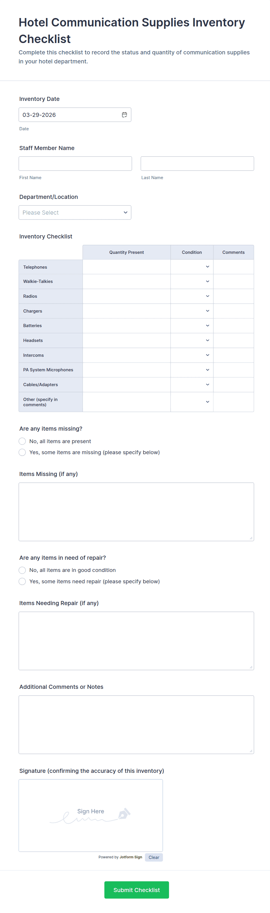 By following these steps, you can create a checklist form that streamlines your processes, ensures consistency, and provides valuable documentation for compliance or reporting. Jotform’s flexibility allows you to adapt your checklist forms as your needs evolve, making it a powerful tool for ongoing task management.