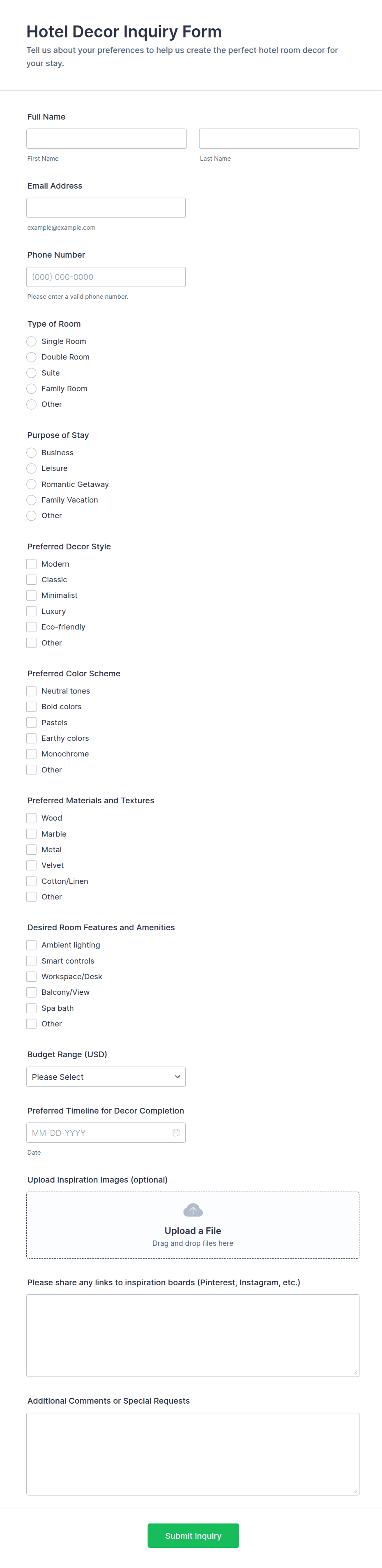 - Use conditional logic to display relevant fields based on user selections (e.g., show additional fields if “Other” is selected as inquiry type).