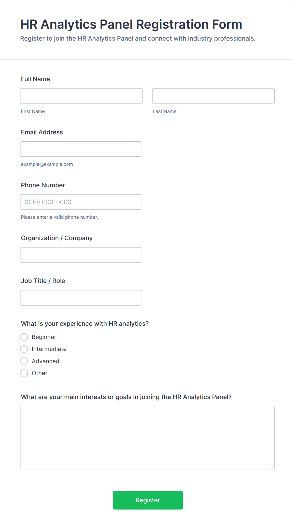 A Human Resources Survey is a structured questionnaire used by HR departments to collect feedback, opinions, and data from employees or job candidates on various workplace topics such as satisfaction, training, onboarding, and company culture.