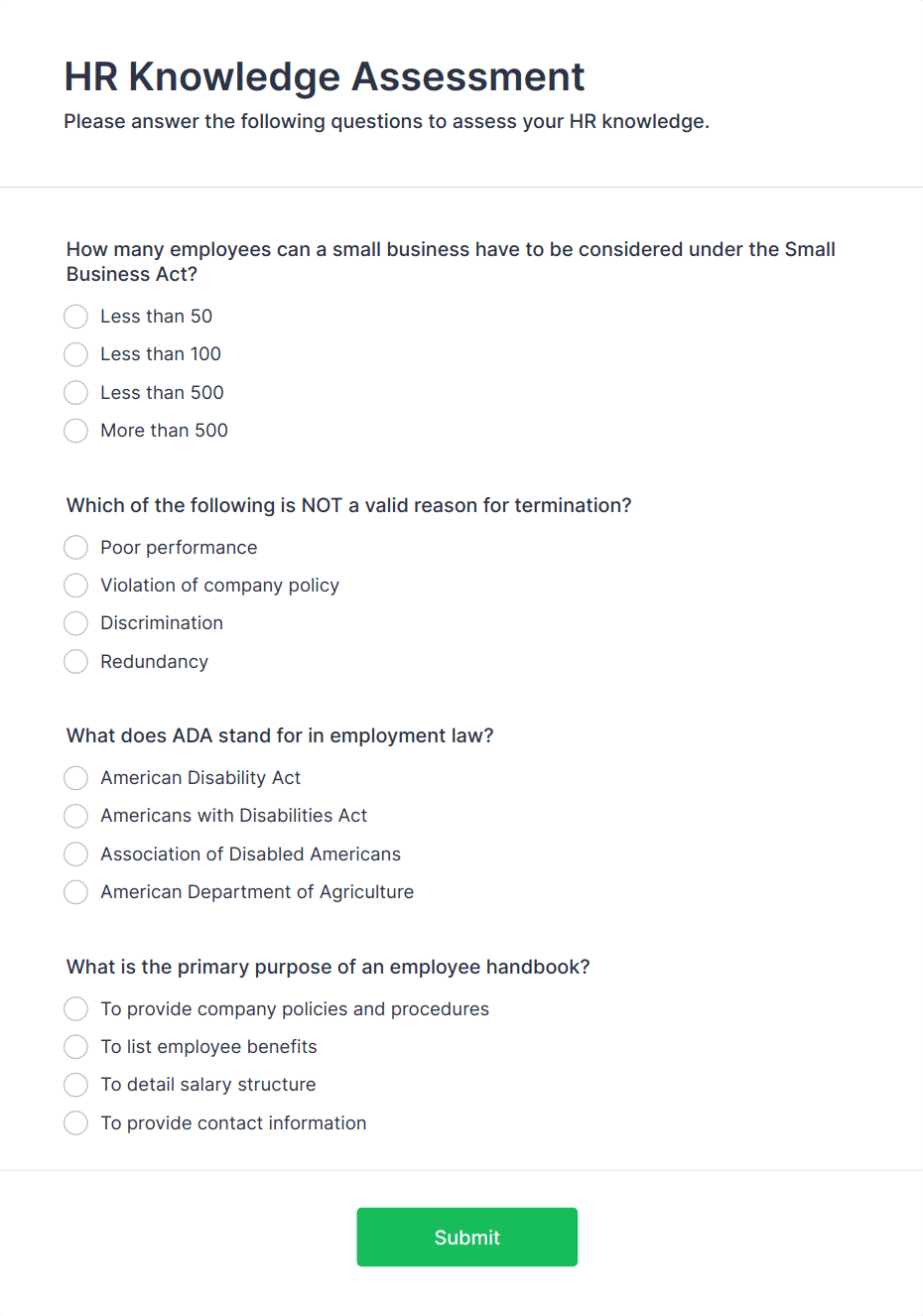 An employee assessment form is an online test that allows companies to evaluate various of their employees.