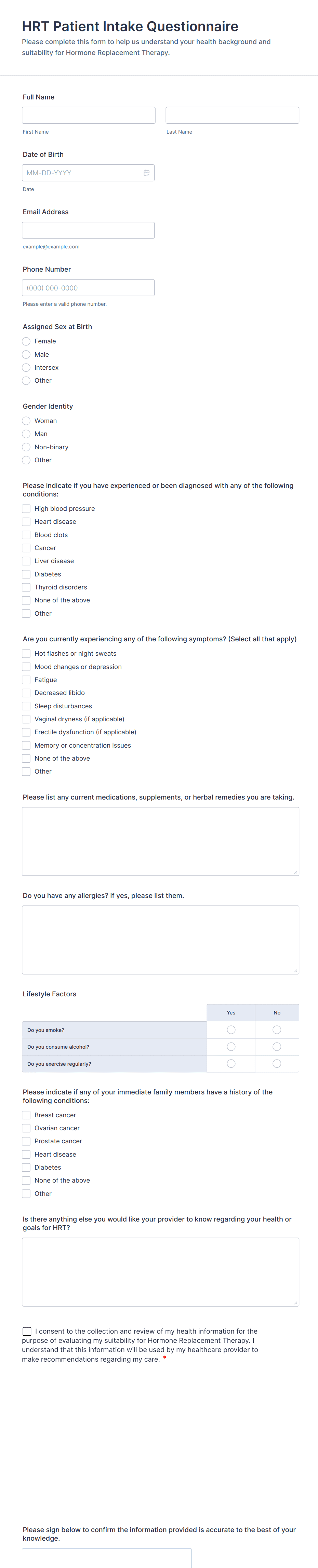 Collect client contact info and e-signatures online with a free Reiki Intake Form. Easy to customize, embed, and fill out on any device. Sync with 100+ apps.