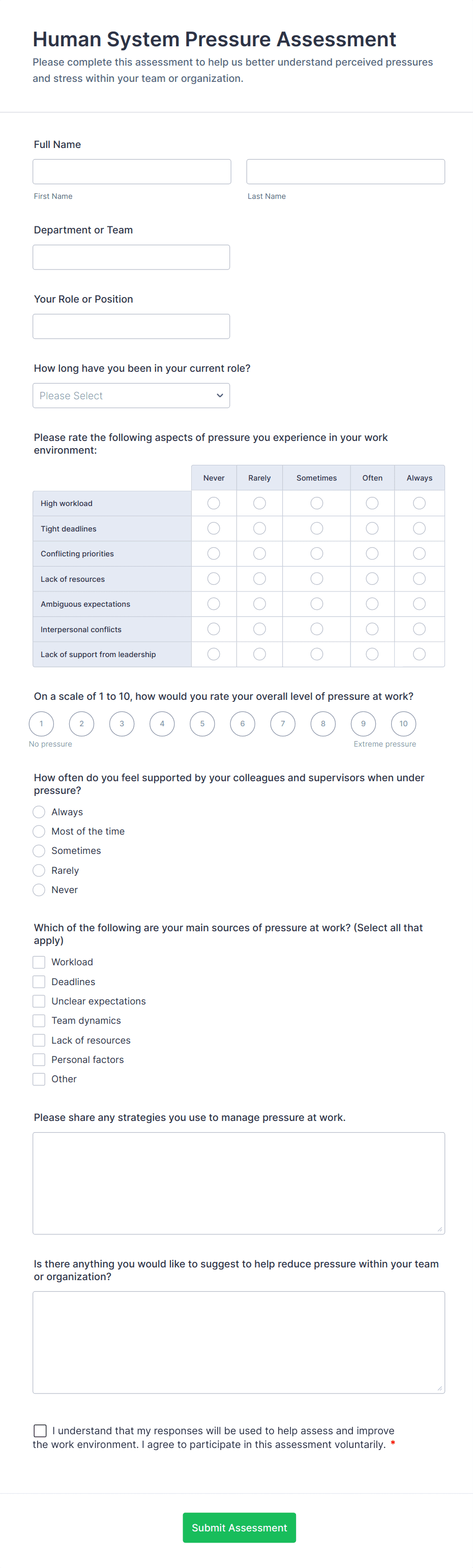 By following these steps, you can create a tailored assessment form that meets your specific needs, streamlines data collection, and provides actionable insights for your organization or project.
