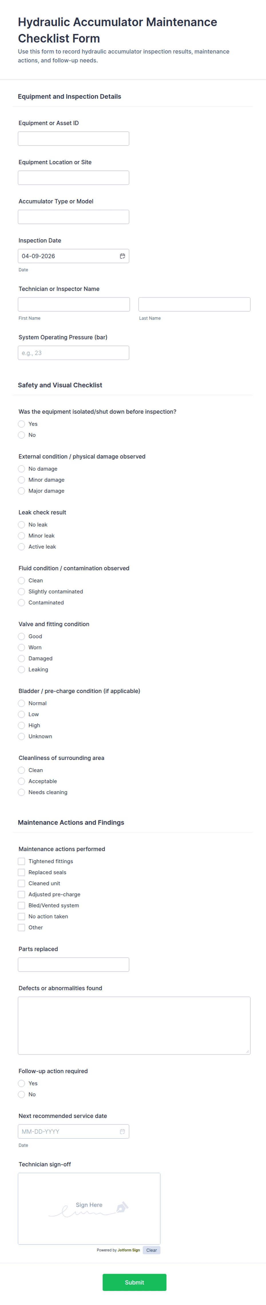 Creating an equipment maintenance form with Jotform helps you standardize maintenance reporting and keep service history organized and easy to track.