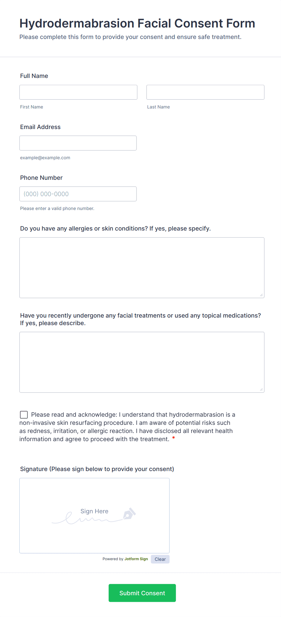 With Jotform, creating and managing medical consent forms becomes a seamless, secure, and efficient process. Jotform’s no-code Form Builder allows healthcare professionals, clinics, and organizations to quickly design custom consent forms tailored to specific procedures or patient needs. Users can leverage drag-and-drop tools, integrate e-signature widgets, and ensure HIPAA compliance for sensitive data. Submissions are automatically stored and organized, making it easy to track consent and maintain accurate records. Jotform’s robust features help streamline the consent process, reduce paperwork, and enhance patient trust and safety.