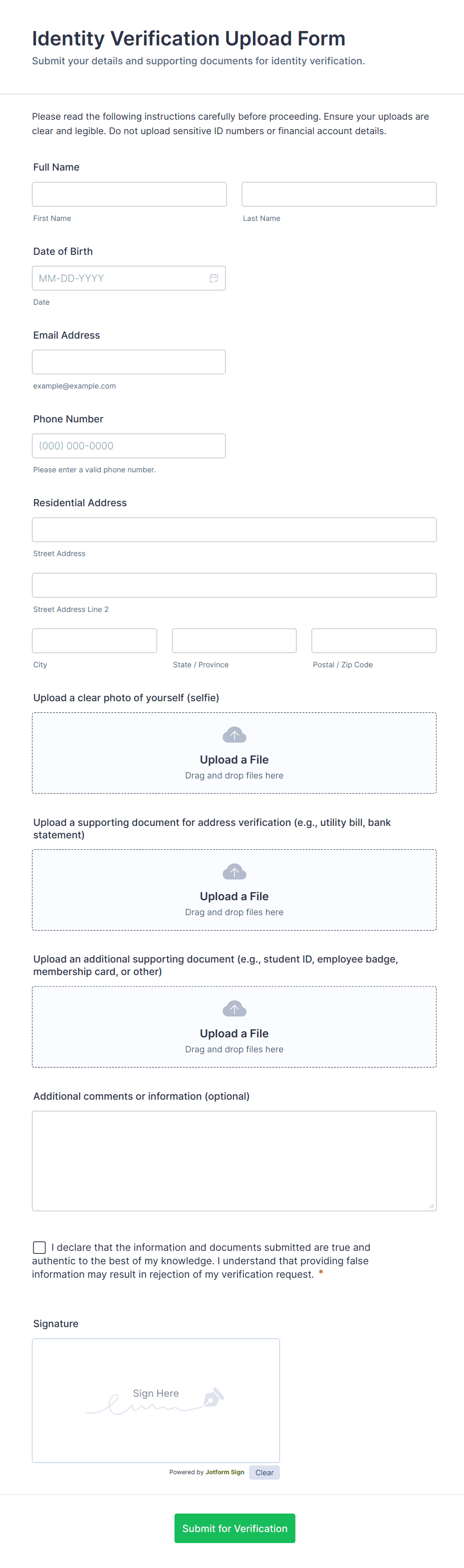 Identity Verification Form