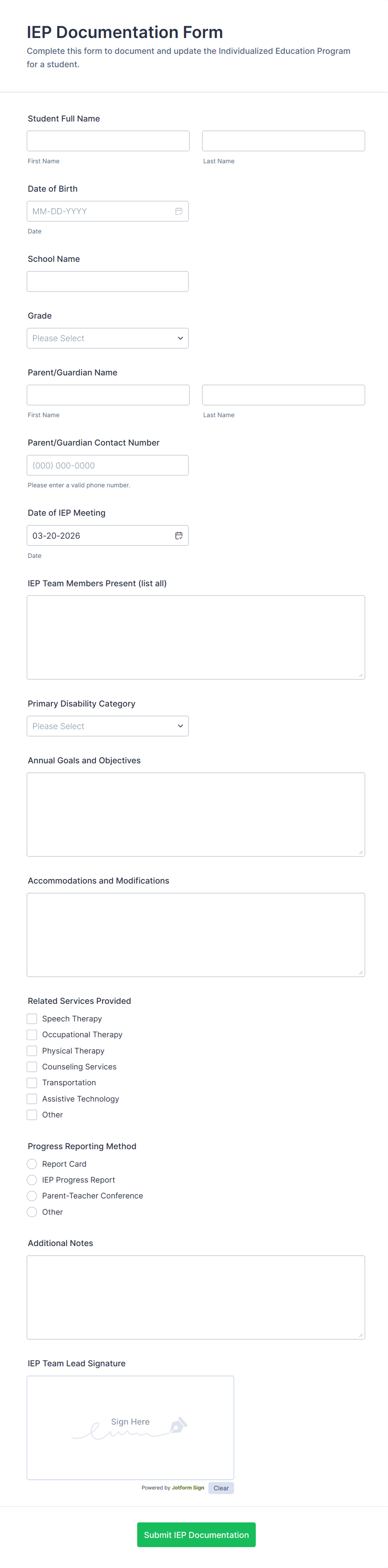 Whether you need to collect student information, teacher evaluations, or transcript requests — make the process quick and easy with these free K-12 Forms. Jotform’s ready-made templates allow you to securely gather important information such as contact details, e-signatures, and file uploads from any device. Get started by choosing a template that works best for you, then make changes on the fly to suit your specific needs. Share your form by sending invitations, including a link in an email newsletter, or by seamlessly embedding it in an online portal with a simple copy-paste embed code.
