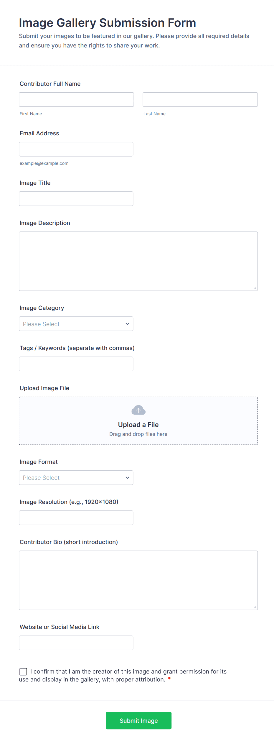 File Upload Forms are specialized online forms designed to collect files, documents, images, or other digital assets directly from users. These forms are commonly used in scenarios where individuals or organizations need to gather supporting materials, such as job applications with resumes, event registrations with ID proofs, homework submissions, design requests, or client onboarding documents. The versatility of File Upload Forms makes them essential for businesses, educational institutions, creative agencies, HR departments, and service providers who require a secure and efficient way to receive files from clients, students, or collaborators.