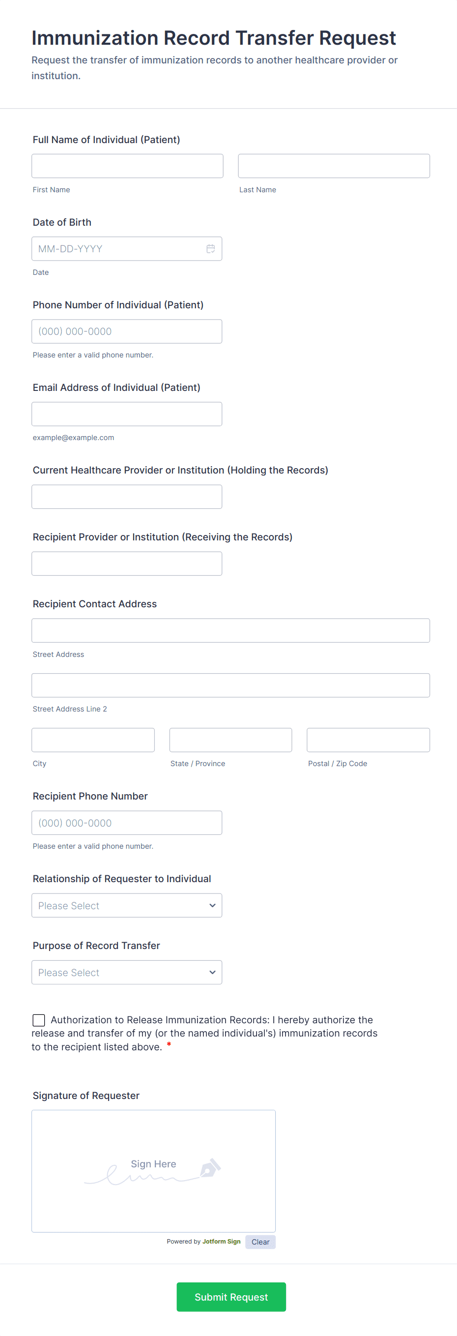 With Jotform, users can easily create, customize, and deploy request forms tailored to their specific needs. Thanks to Jotform’s intuitive drag-and-drop Form Builder, anyone can design a professional-looking request form without any coding knowledge. Users can add fields, set up conditional logic, integrate with payment gateways, and automate notifications to streamline the entire request process. Submissions are automatically organized in Jotform Tables, making it simple to track, manage, and respond to requests efficiently. Whether you’re a business, school, nonprofit, or government agency, Jotform’s request forms help you collect and process requests with ease.