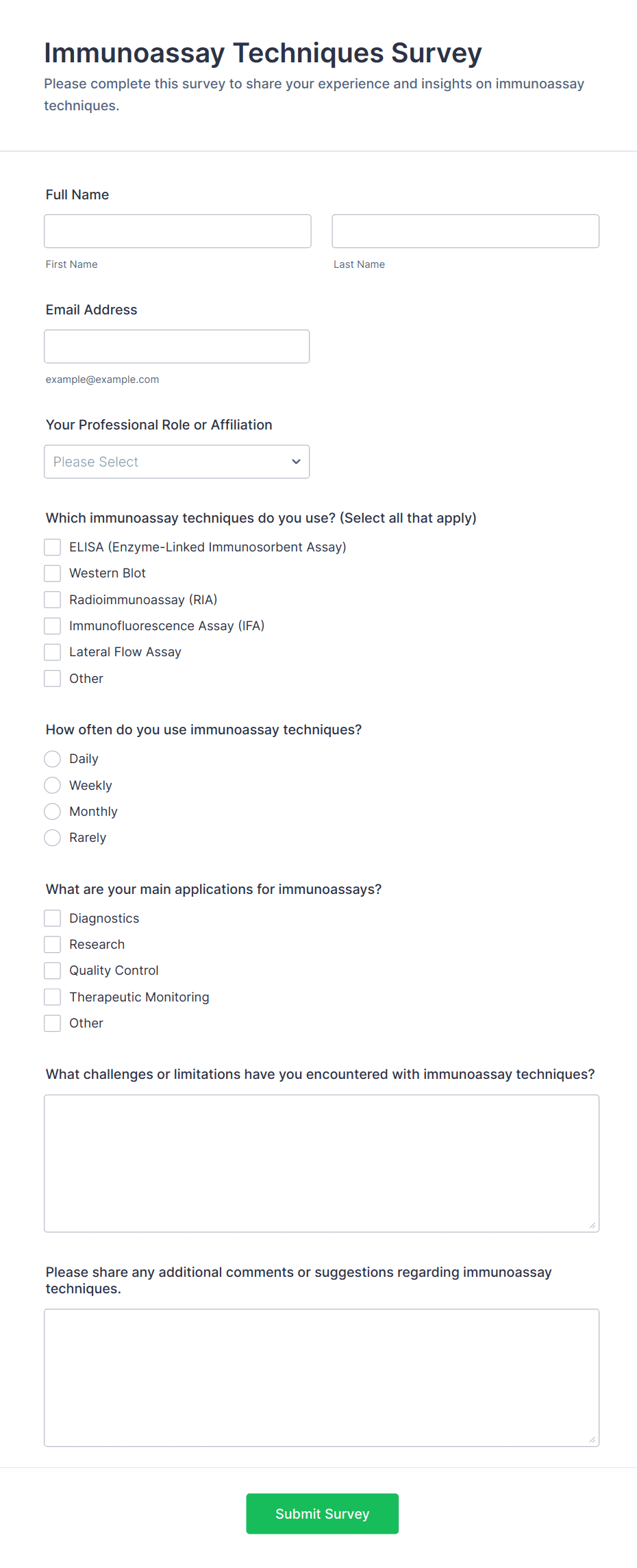 Medical surveys and questionnaires are essential tools used by healthcare professionals, researchers, clinics, and organizations to collect valuable information about patients’ health, medical histories, symptoms, treatment outcomes, and overall well-being. These forms can be used for a variety of purposes, such as patient intake, health risk assessments, satisfaction surveys, mental health screenings, post-visit feedback, and clinical research studies. By gathering structured data directly from patients or study participants, medical surveys and questionnaires help streamline workflows, improve patient care, and support evidence-based decision-making in healthcare settings.