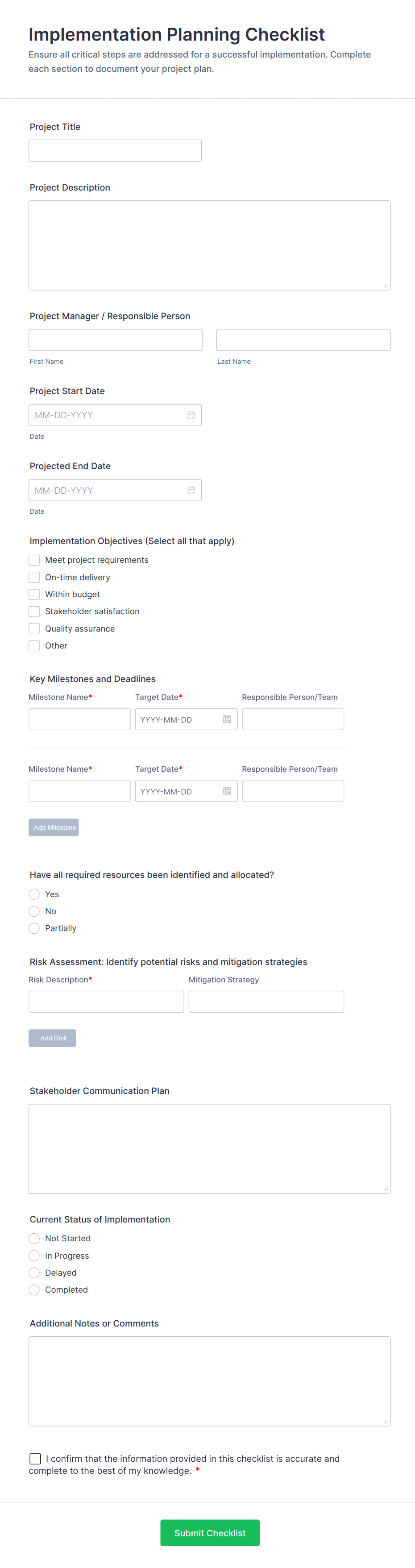 • For more complex checklists, add dropdowns, file upload fields (for attaching evidence or reports), or signature fields (for verification).