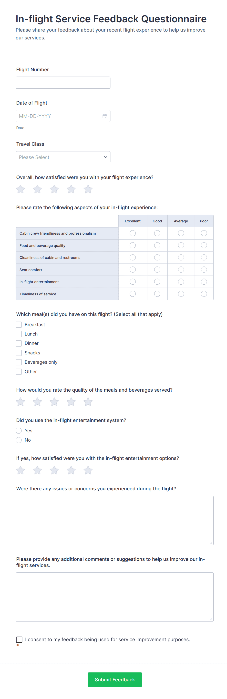• For customer feedback, include satisfaction ratings and open-ended comment fields.