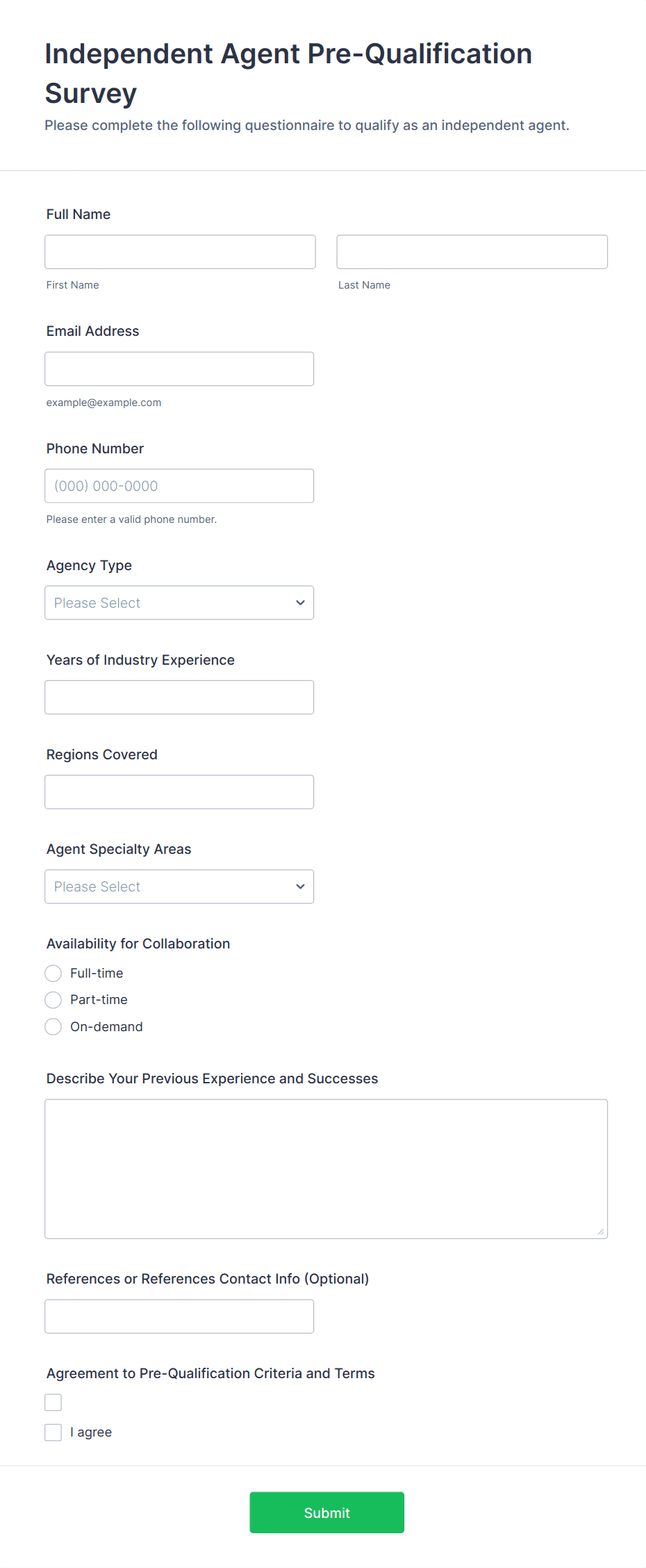 Independent Agent Pre-Qualification Survey Form FAQs