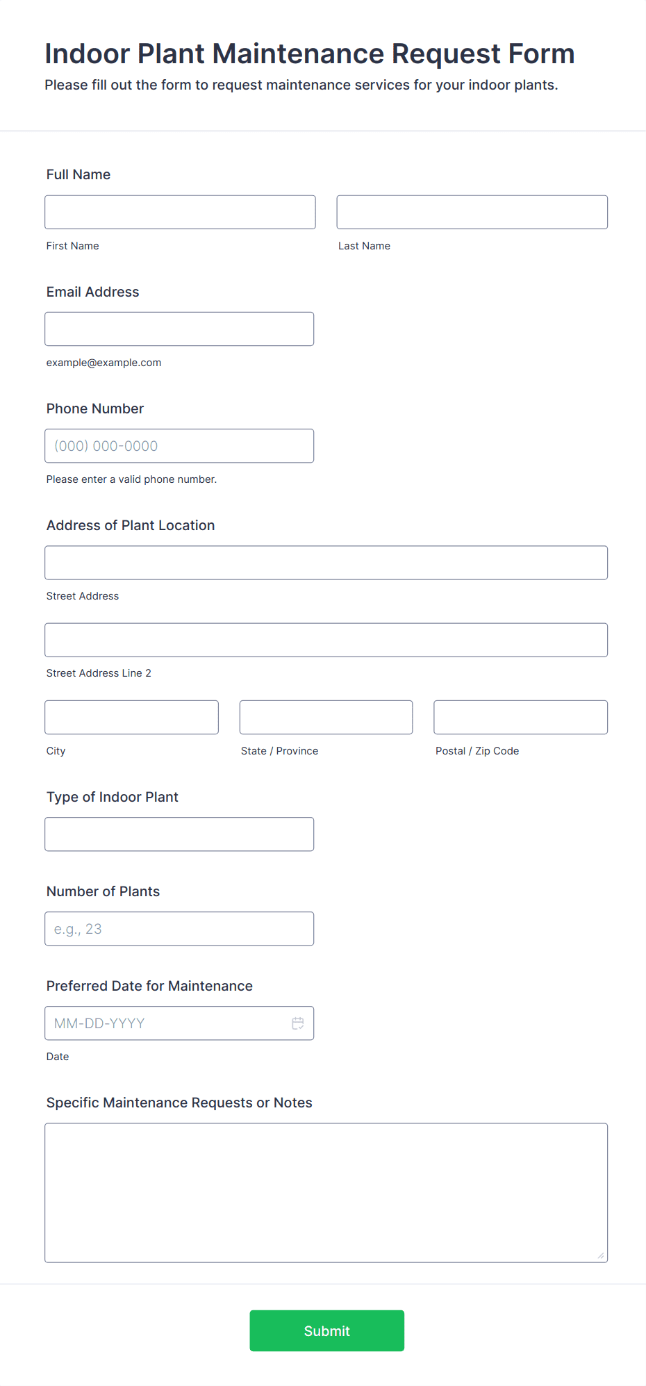A maintenance request form is used by both property owners and building managers to identify maintenance issues and submit service requests. Easy to use. No coding.