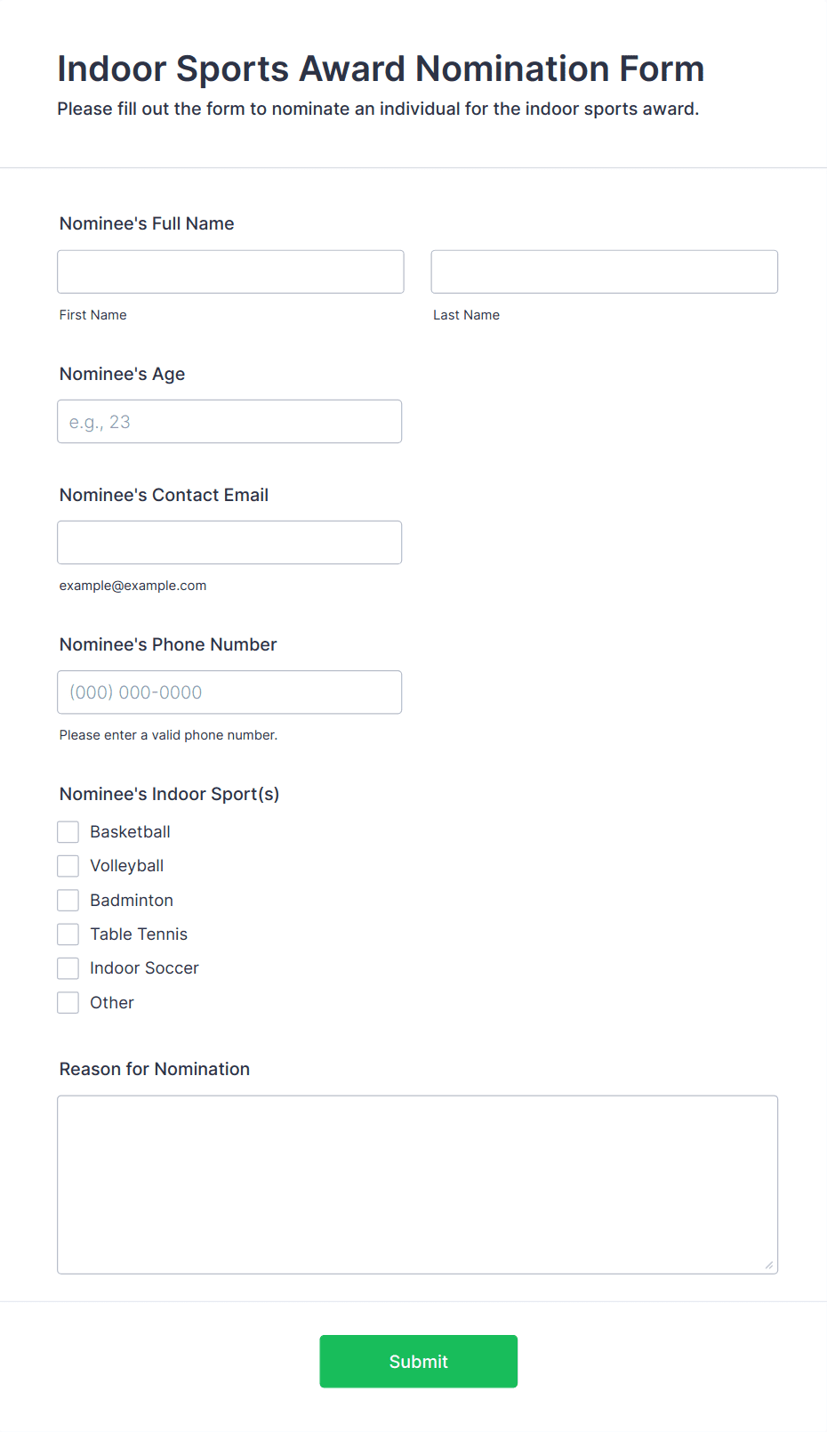 Award forms are used by HR departments, schools, non-profits, event organizers, professional associations, and anyone running a recognition or competition program.