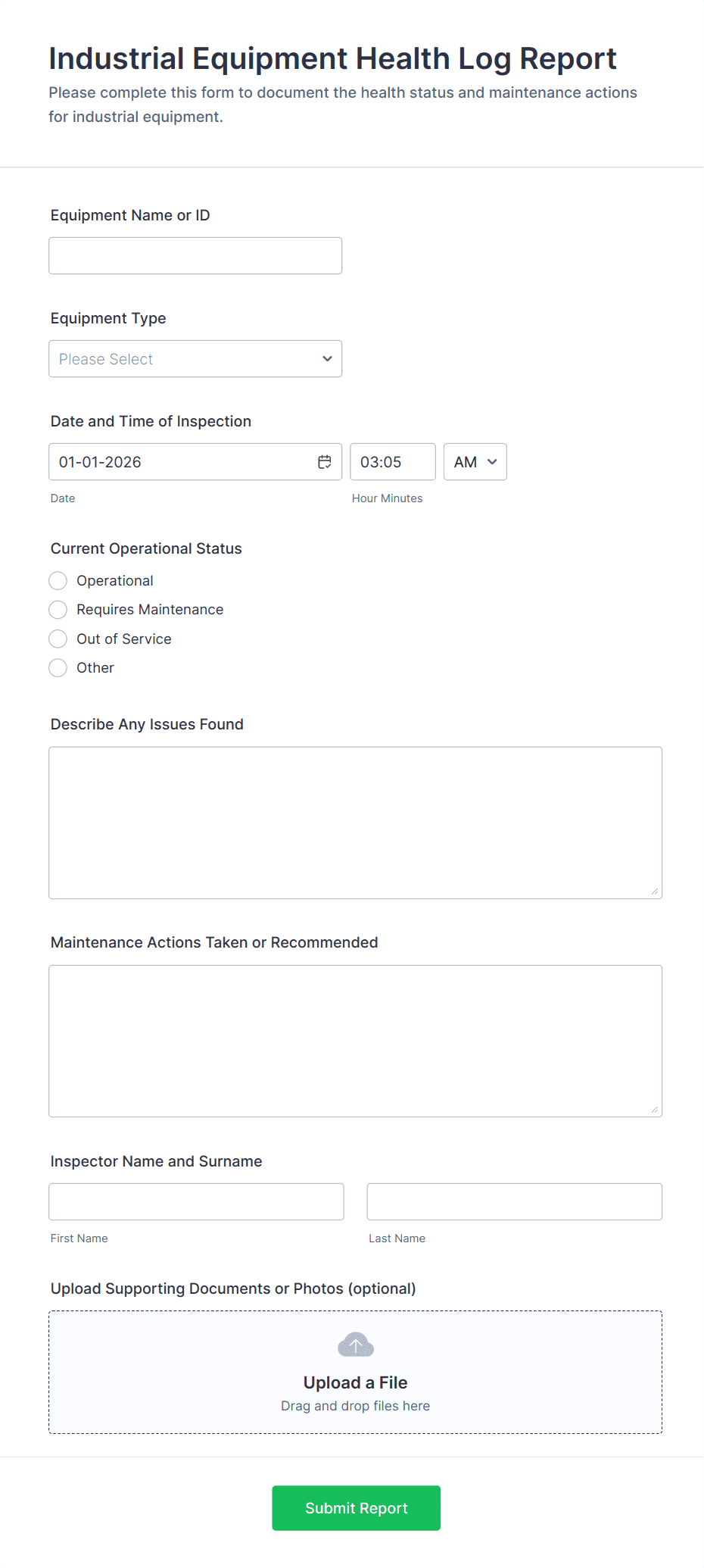 Creating an equipment maintenance form with Jotform helps you standardize maintenance reporting and keep service history organized and easy to track.