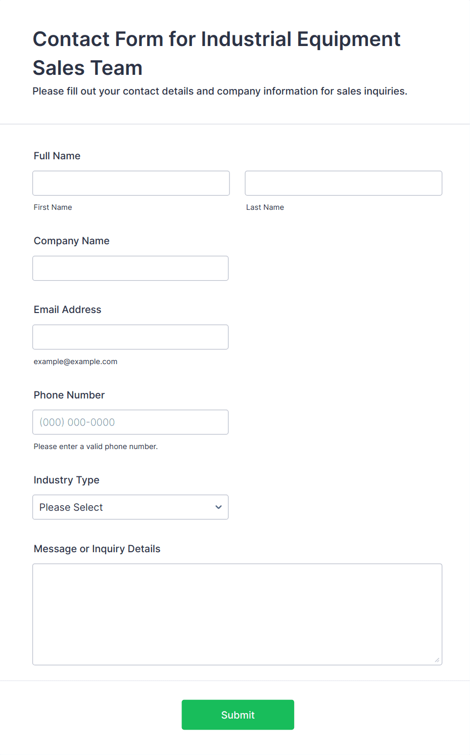 • Sales or quote request forms could ask for company details, budget, and specific service interests.