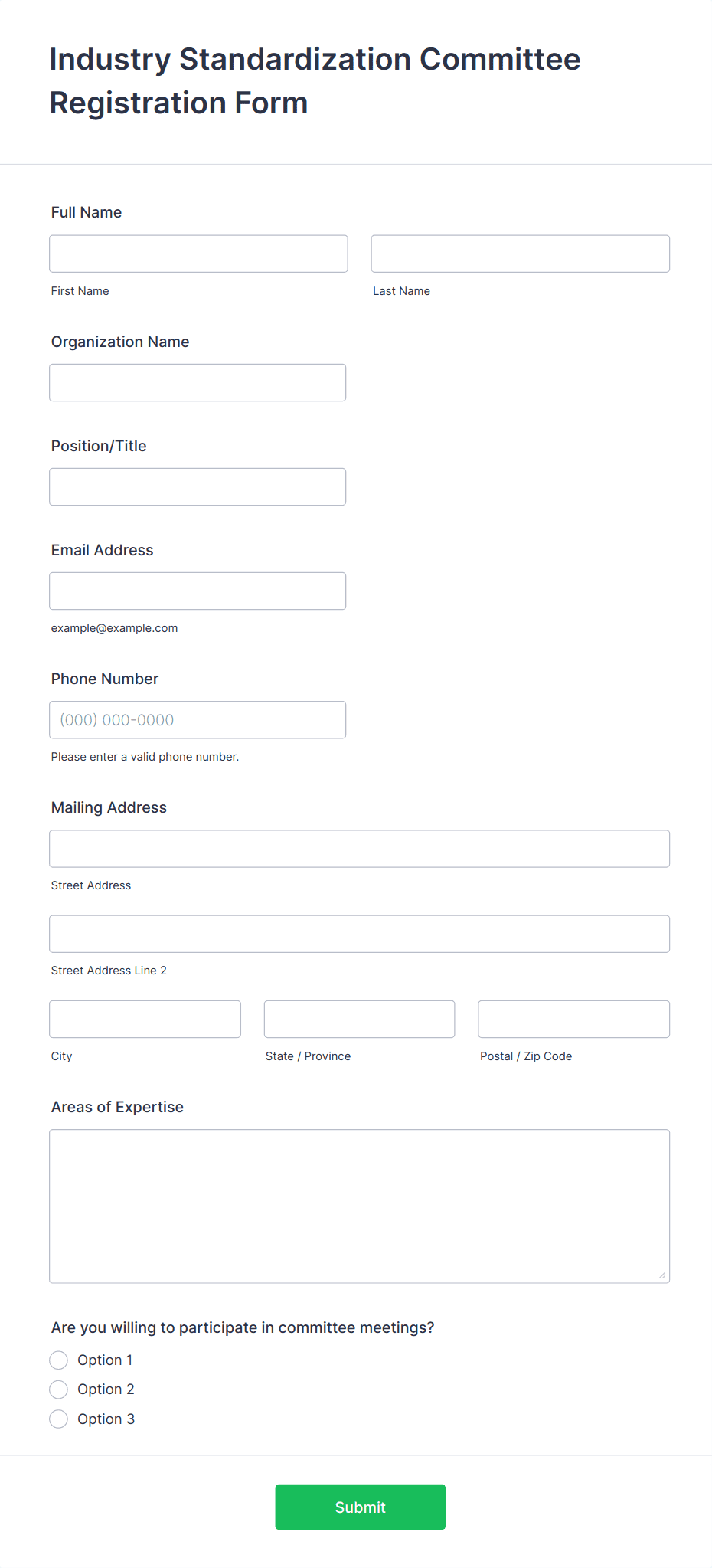 • For event or course registrations, include fields for session selection, preferences, or special requirements.