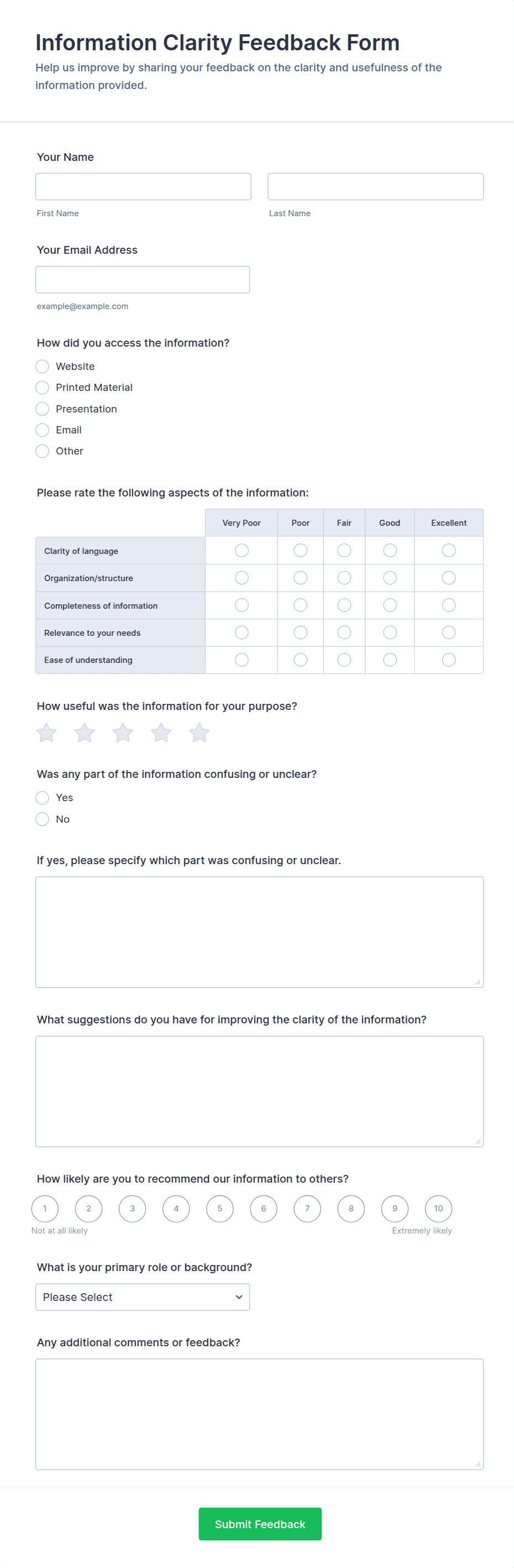 Service Quality Feedback Form is a tailored template designed to streamline the process of gathering customer feedback. It aids in identifying pain points, enhancing service quality, and fostering customer satisfaction. Perfect for service-based businesses in any industry.